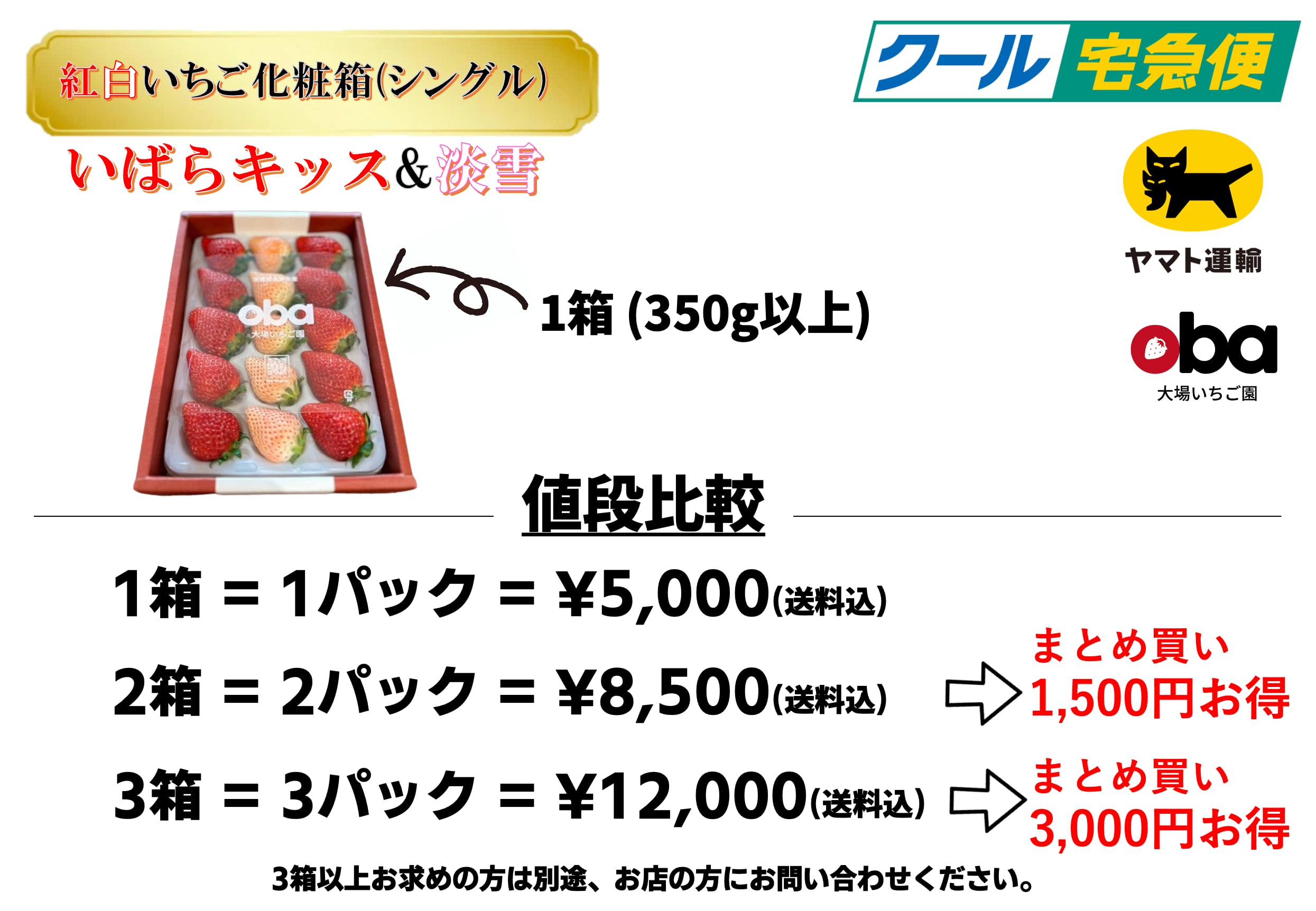 【3箱】紅白いちご化粧箱 シングル (いばらキッス+淡雪)